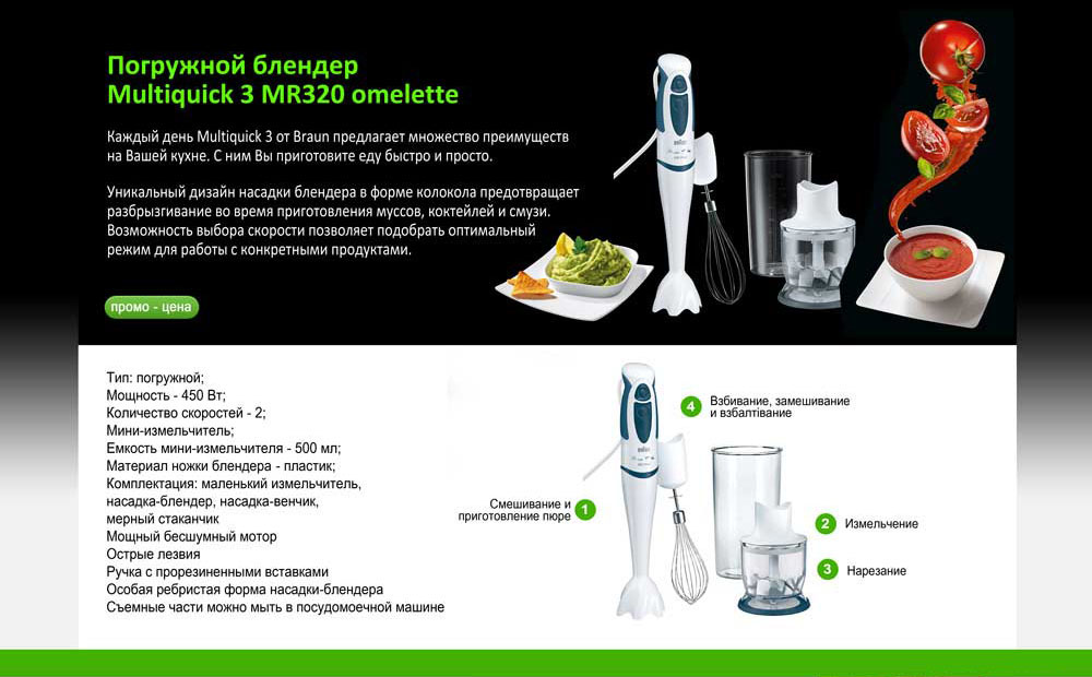 - Погружной блендер BRAUN Multiquick 3 MR320 omelette